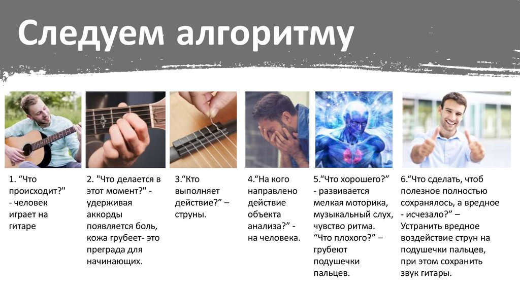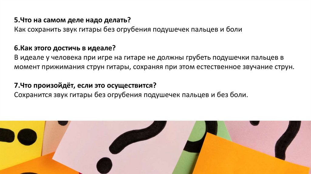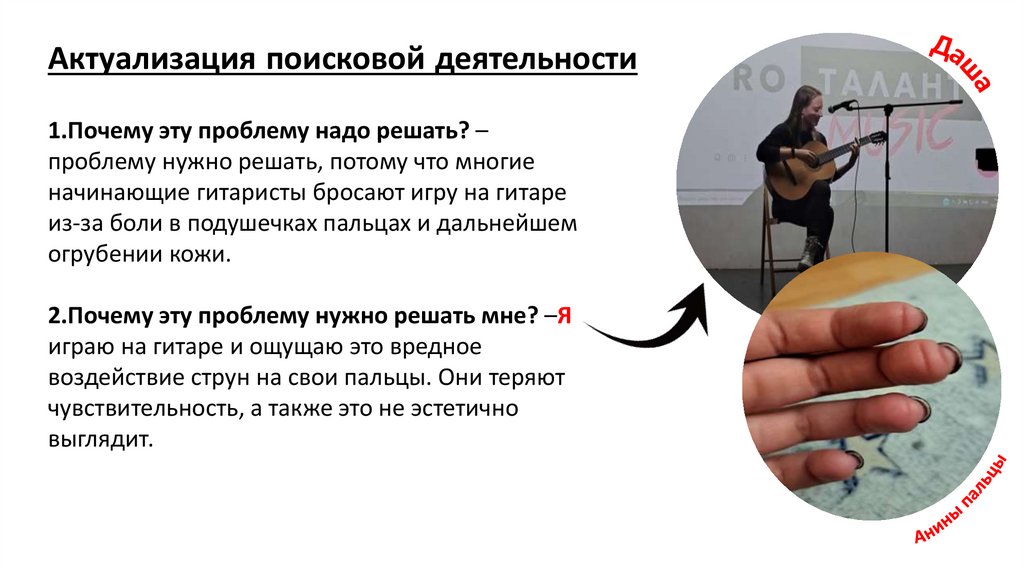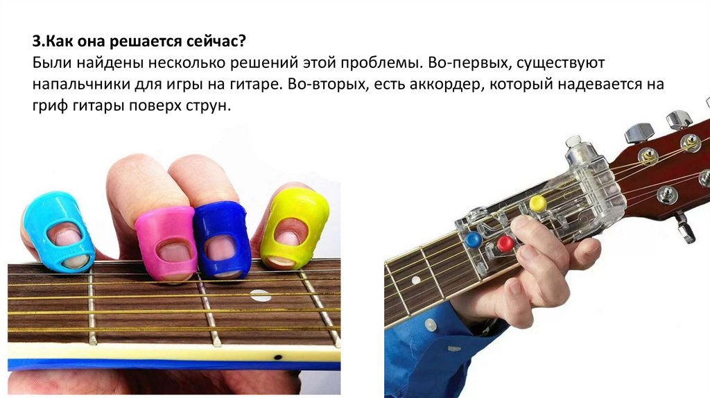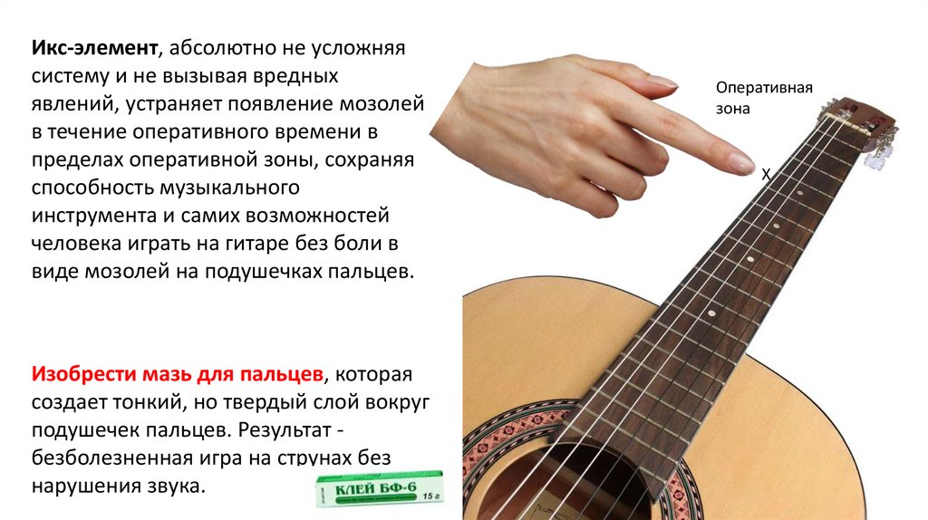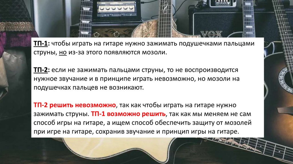 ТП-1: чтобы играть на гитаре нужно зажимать подушечками пальцамиструны, но из-за этого появляются мозоли.