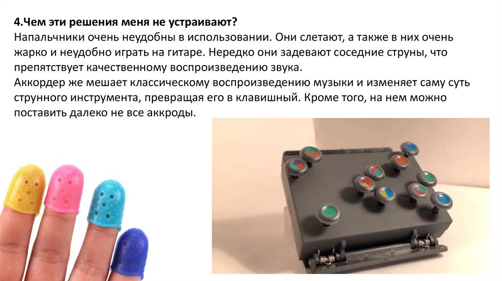 4.Чем эти решения меня не устраивают?Напальчники очень неудобны в использовании. Они слетают, а также в них очень