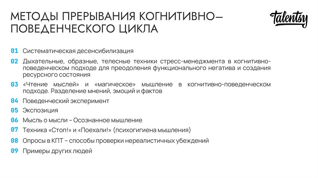 выберите методы прерывания когнитивно-поведенческого цикла,