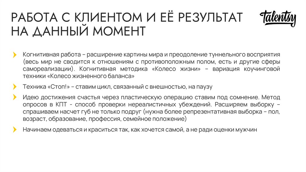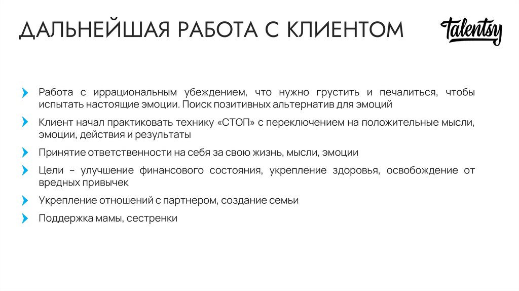 узнаете о работе с клиентом и её результатах на данный момент и о дальнейшей работе,