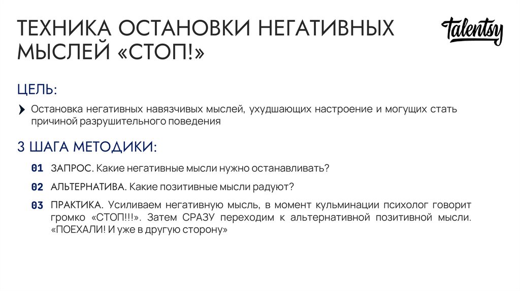 ТЕХНИКА ОСТАНОВКИНЕГАТИВНЫХ МЫСЛЕЙ