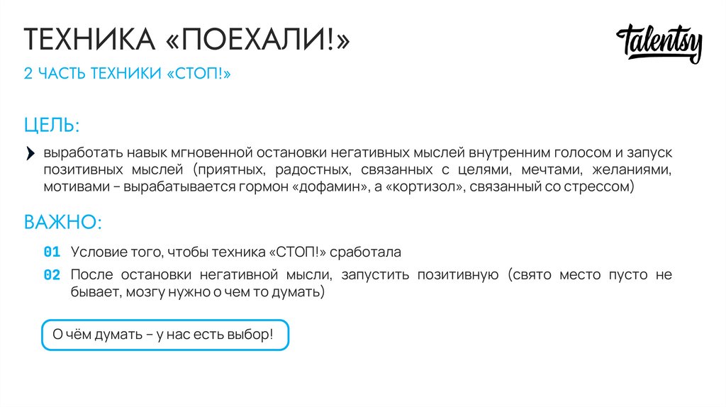 ТЕХНИКА «ПОЕХАЛИ!»2 ЧАСТЬ ТЕХНИКИ «СТОП!»