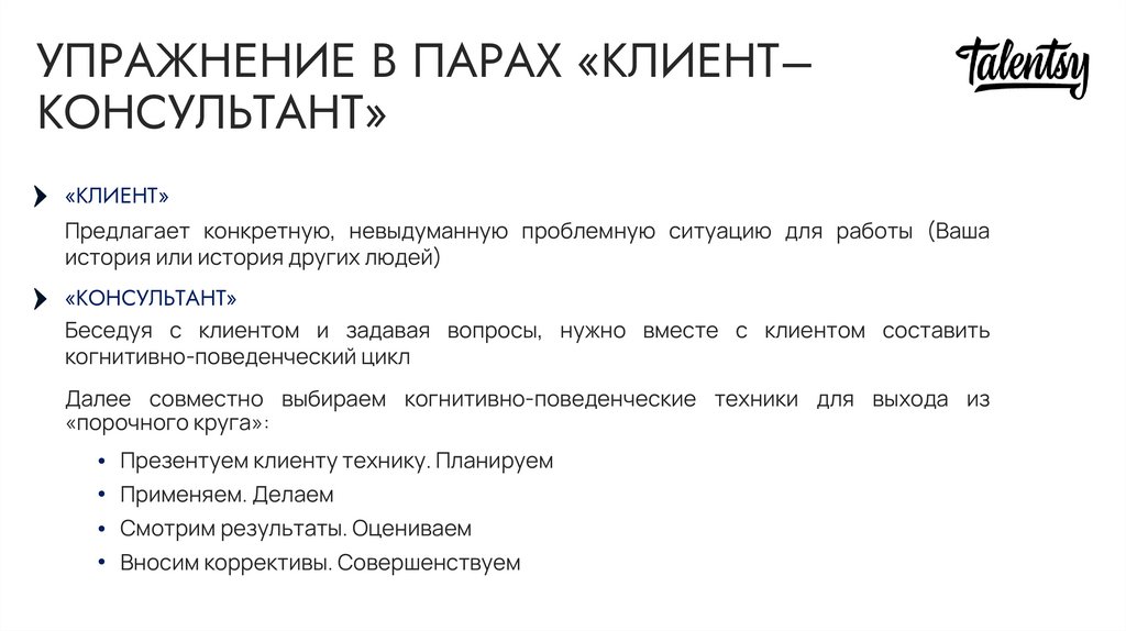 УПРАЖНЕНИЕ В ПАРАХ «КЛИЕНТ–КОНСУЛЬТАНТ»