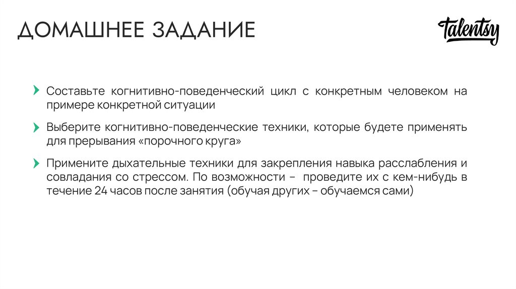 Далее совместно выбираем когнитивно-поведенческие техники для выхода из