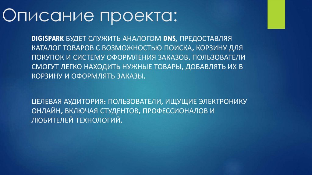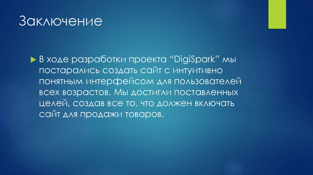 В ходе разработки проекта “DigiSpark” мыпостарались создать сайт с интуитивно