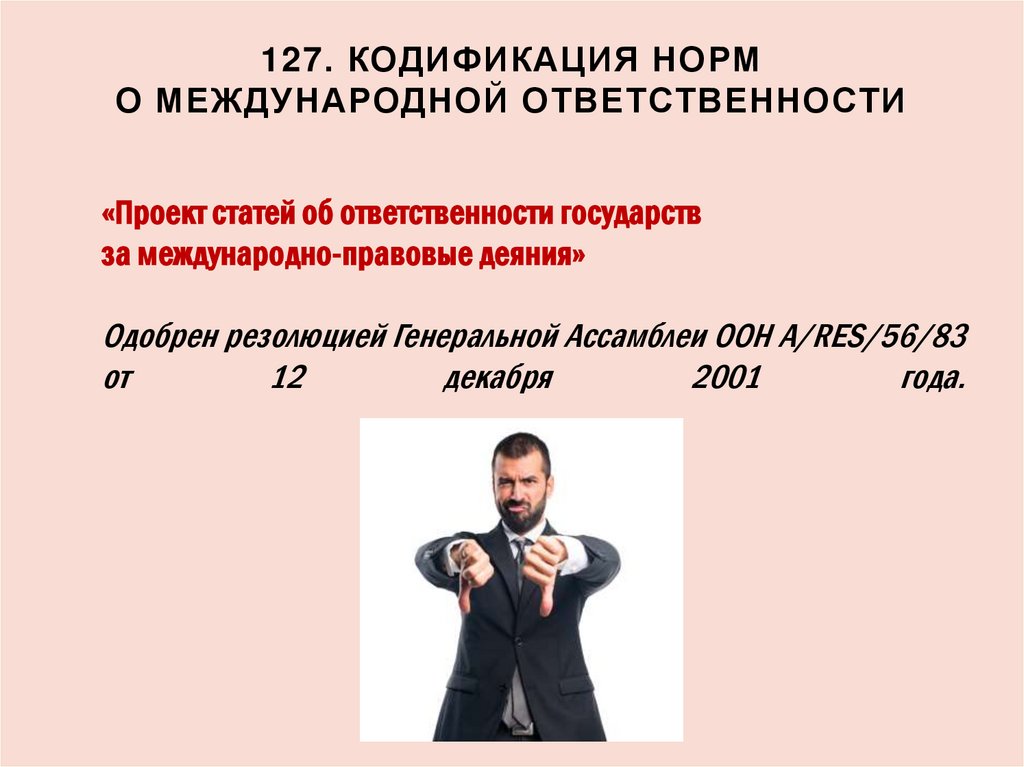 127. КОДИФИКАЦИЯ НОРМО МЕЖДУНАРОДНОЙ ОТВЕТСТВЕННОСТИ
