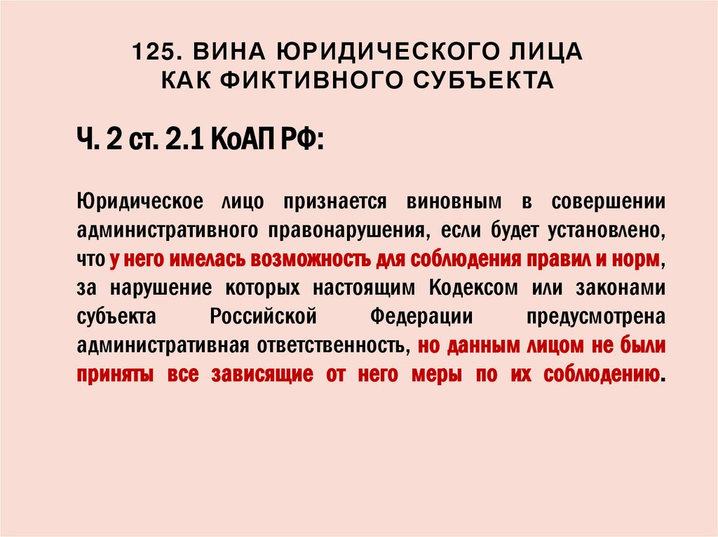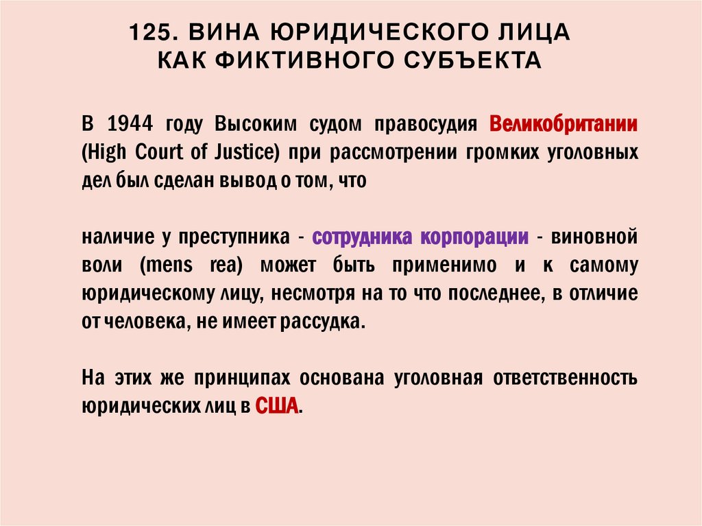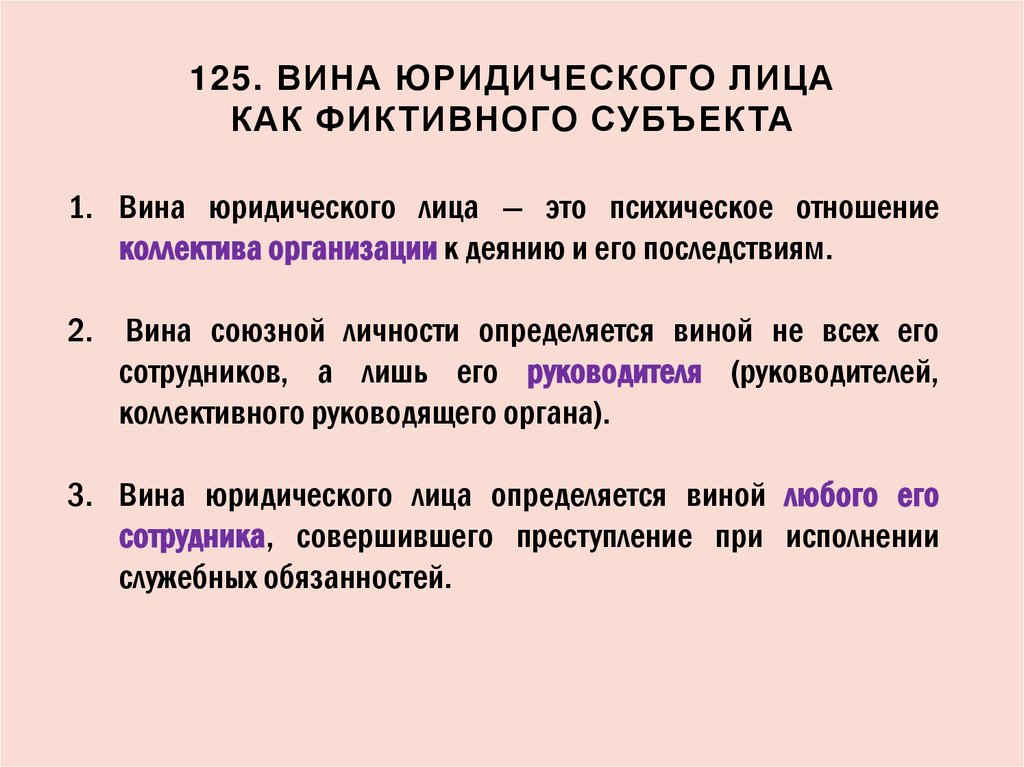 125. ВИНА ЮРИДИЧЕСКОГО ЛИЦАКАК ФИКТИВНОГО СУБЪЕКТА