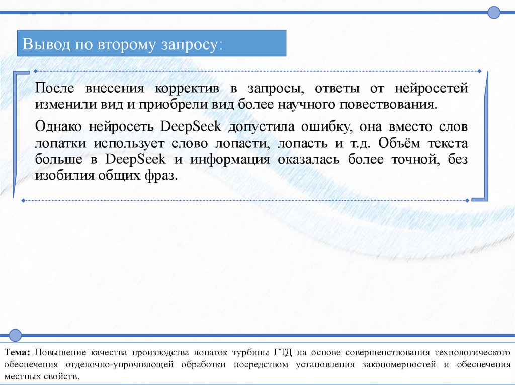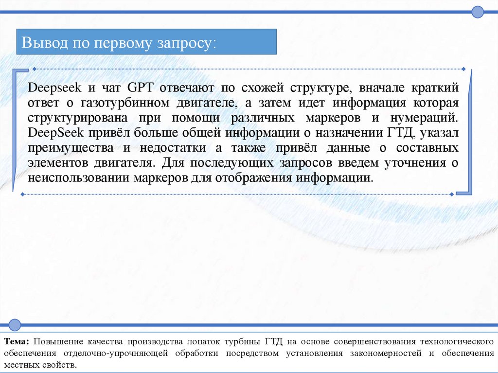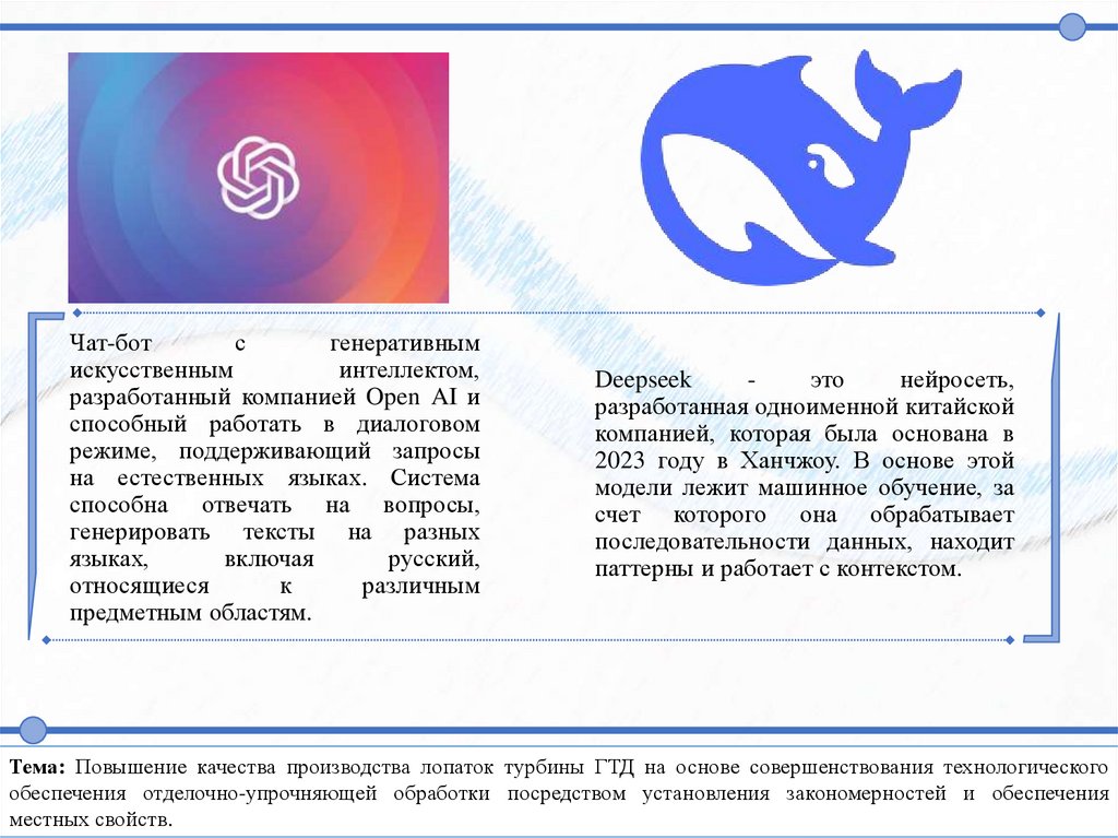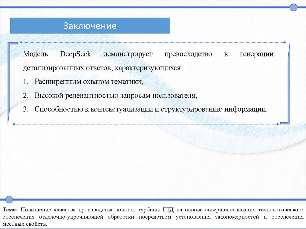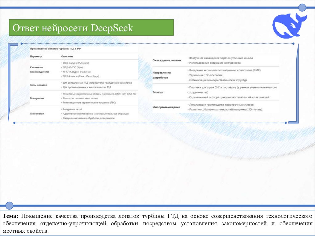 Ответ нейросети DeepSeekТема: Повышение качества производства лопаток турбины ГТД на основе совершенствования технологического