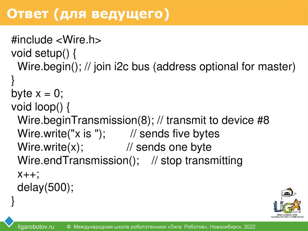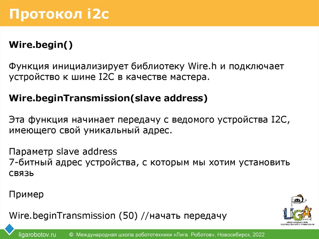 Знакомство с Arduino часть 2Занятие 9. Передача по i2c