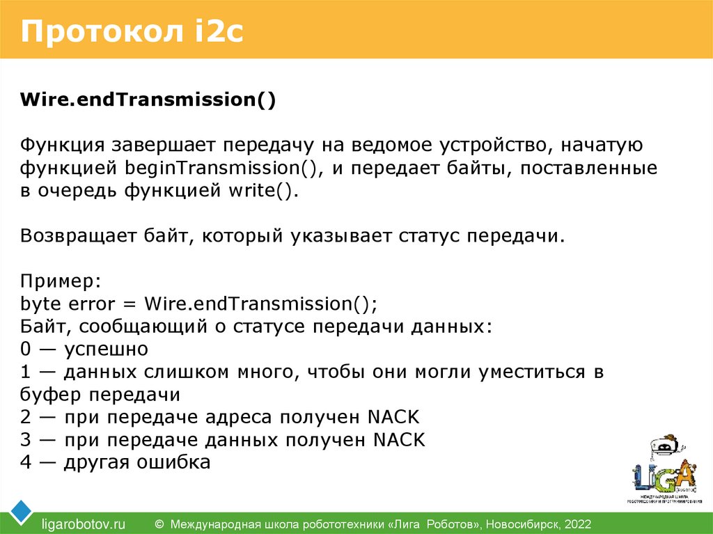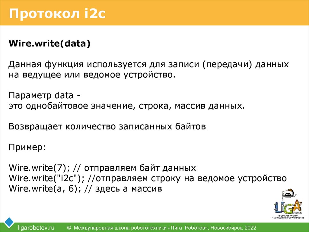 Wire.write("i2c"); //отправляем строку на ведомое устройство