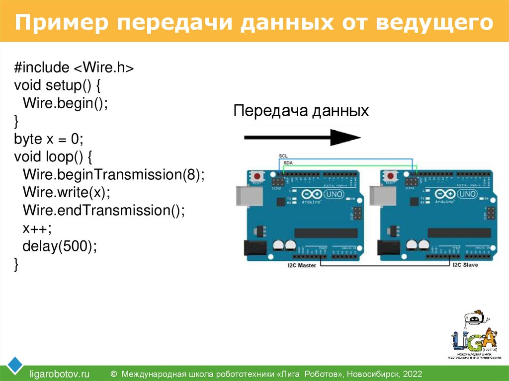 Знакомство с Arduino. Часть 2. Занятие 9. Передача по i2c