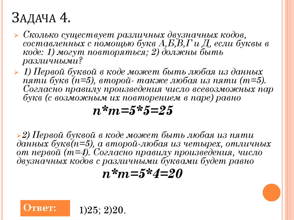 ЗАДАЧА 4.Сколько существует различных двузначных кодов,