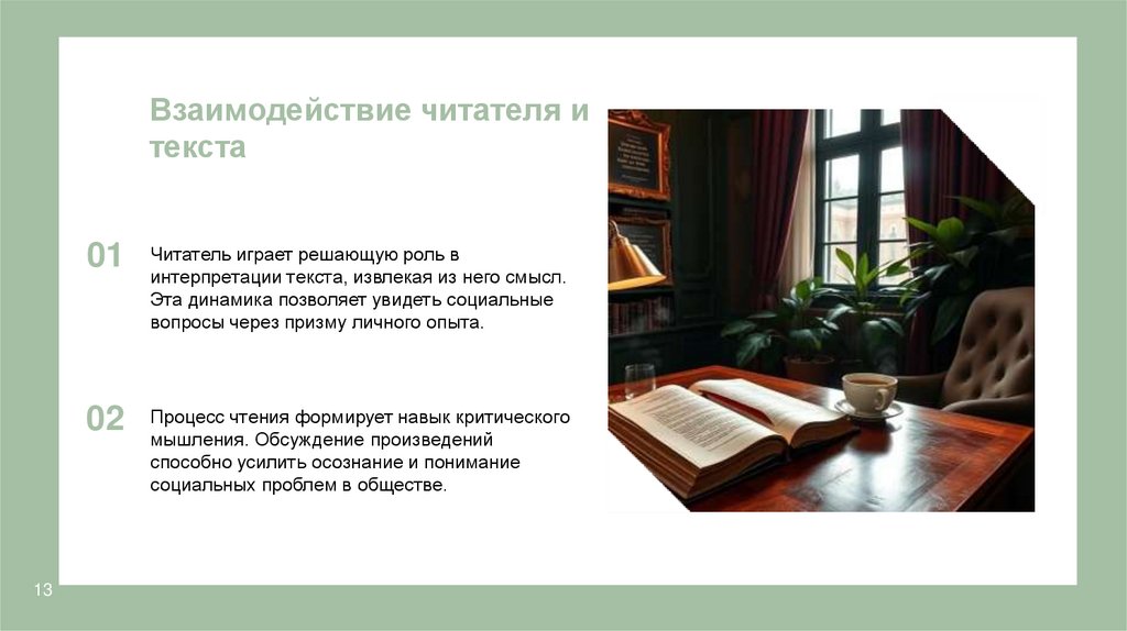 художественное и общественное. Распознавая и обсуждая подобные темы, читатели могут