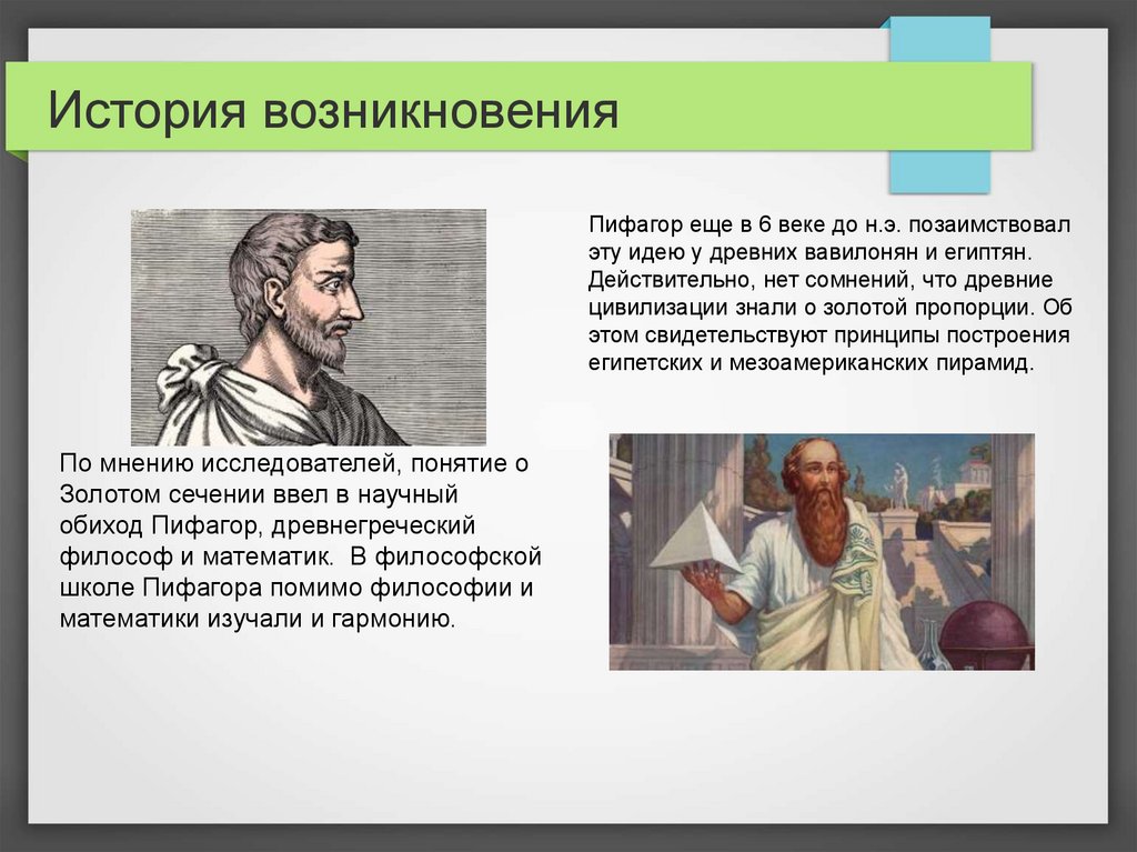 История возникновенияПифагор еще в 6 веке до н.э. позаимствовал
