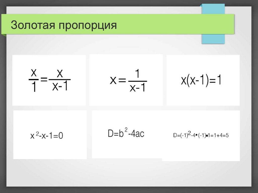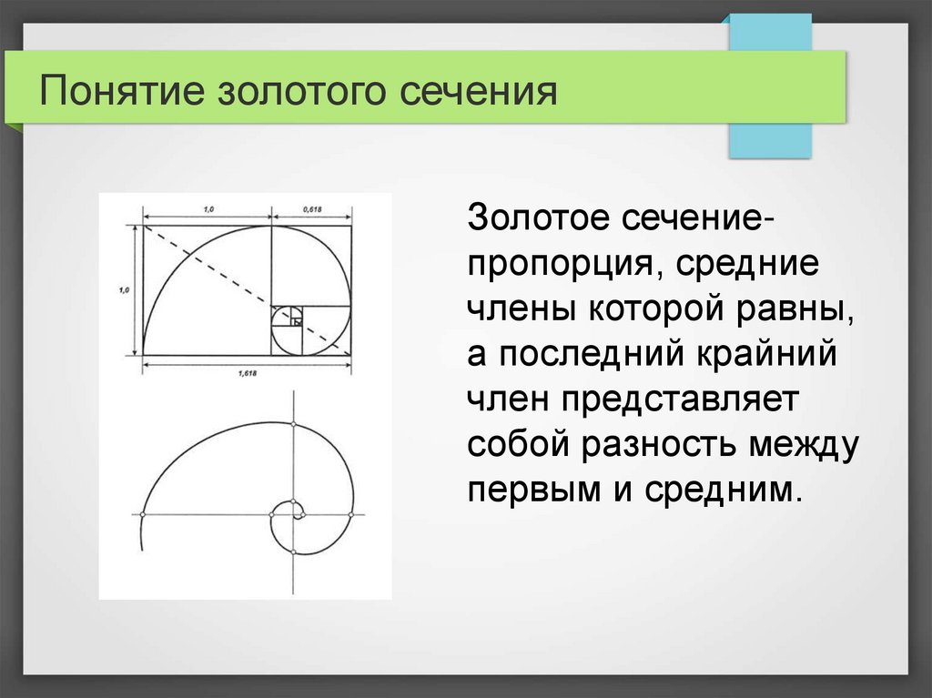 Понятие золотого сеченияЗолотое сечениепропорция, средние