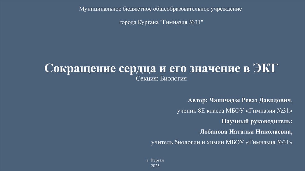1. Сокращение сердца и его значение в ЭКГ Секция: Биология