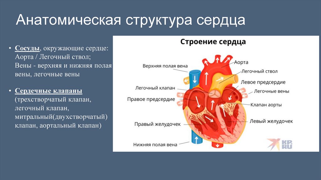 Анатомическая структура сердца• Сосуды, окружающие сердце: