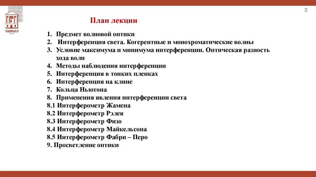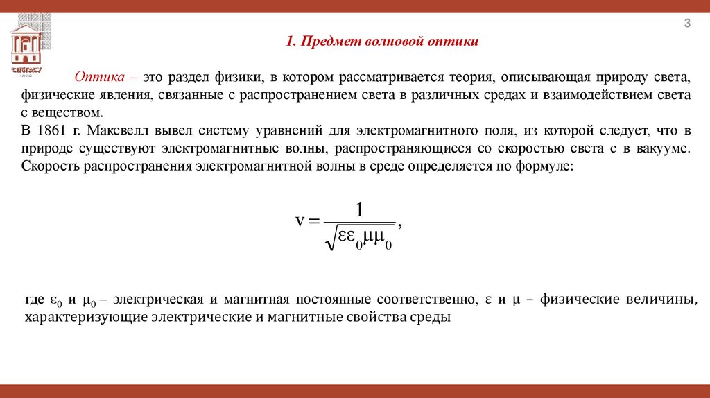 1. Предмет волновой оптики
