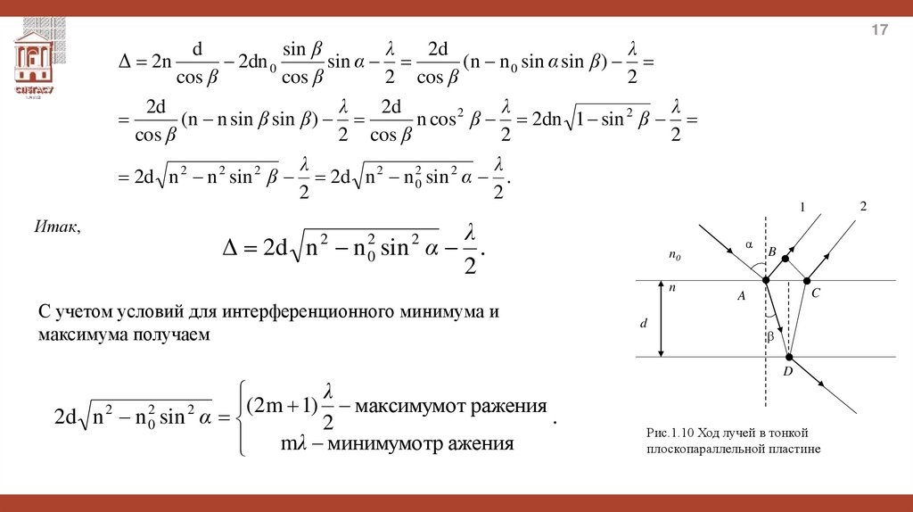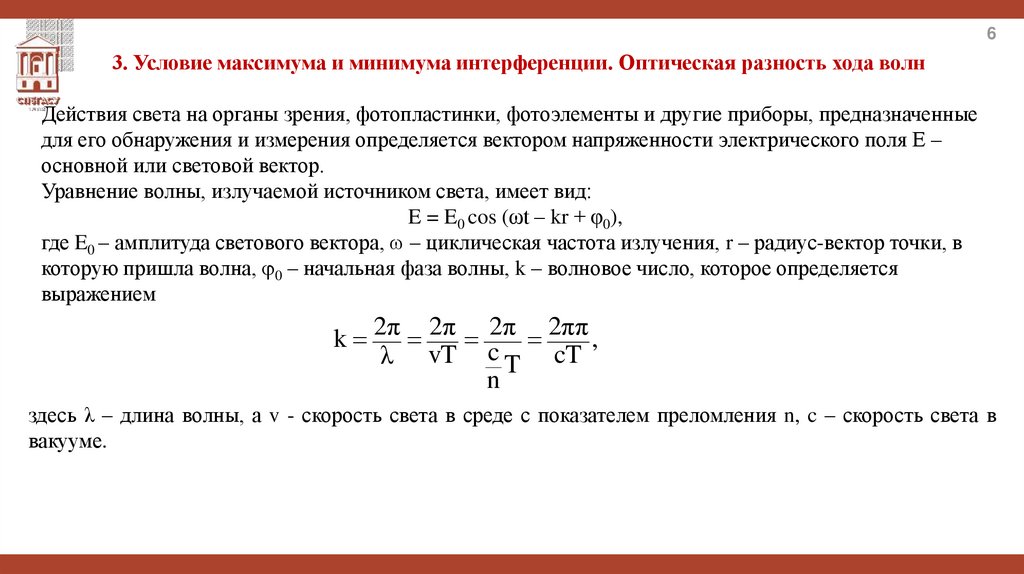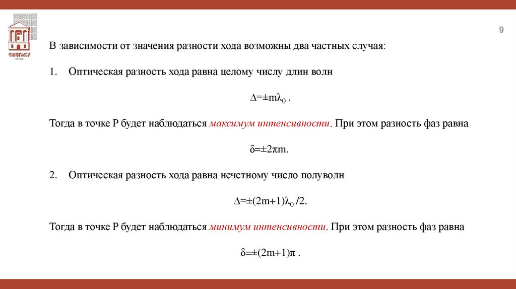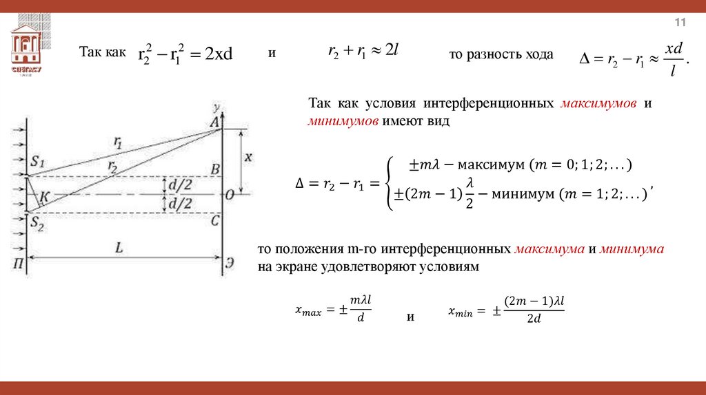 3. Условие максимума и минимума интерференции. Оптическая разность