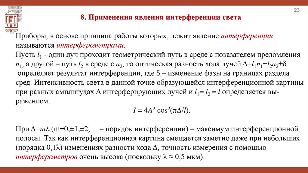 8.4 Интерферометр Майкельсона