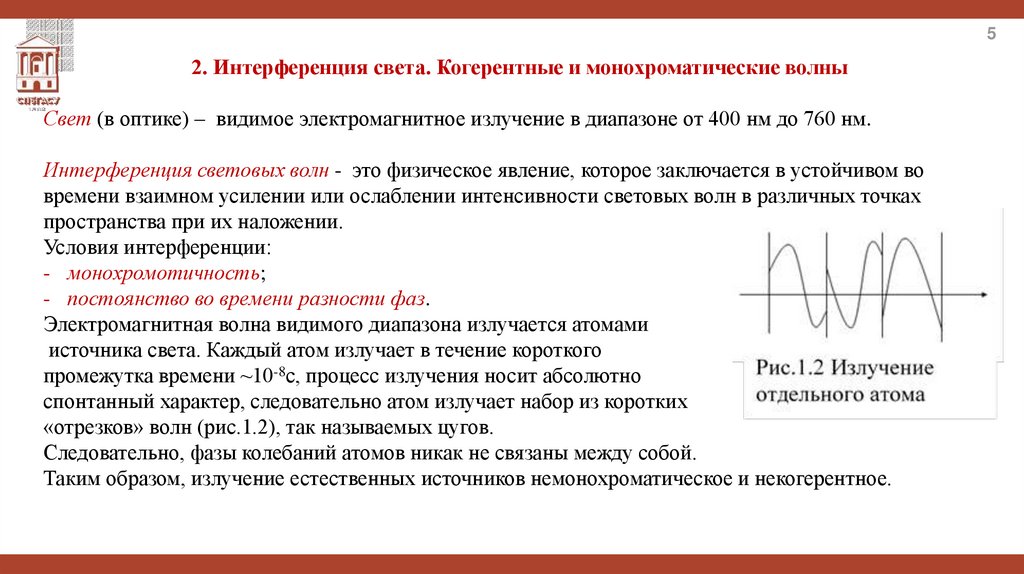 2. Интерференция света. Когерентные и монохроматические волны