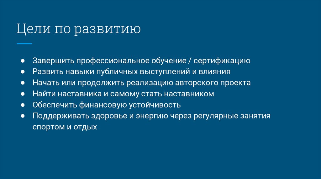 Цели по развитиюЗавершить профессиональное обучение / сертификацию