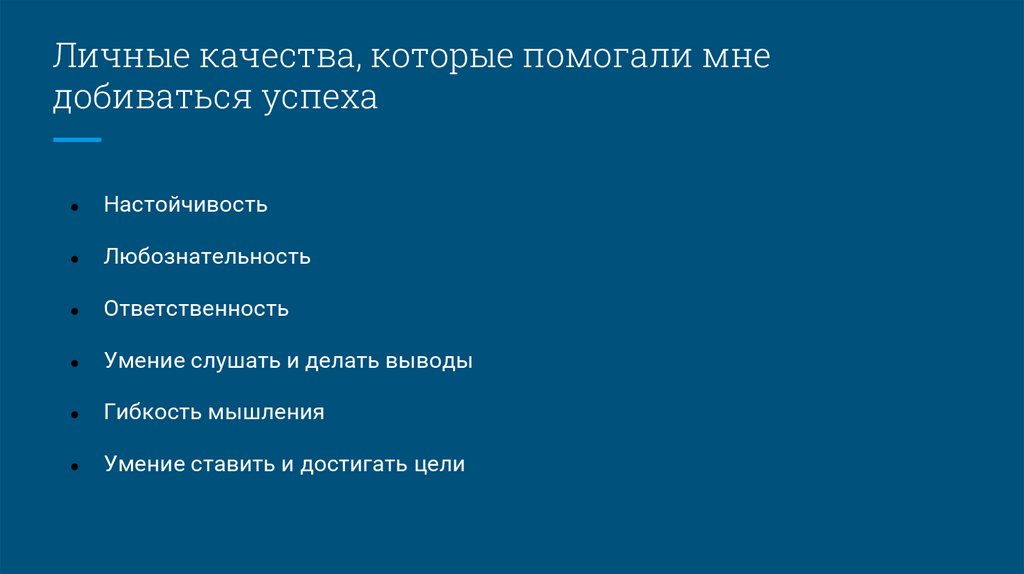 анализировать и доводить начатое до конца. Для меня важно чувствовать