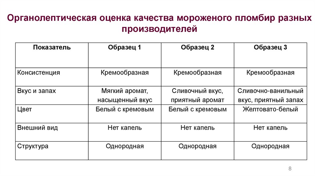Органолептическая оценка качества мороженого пломбир разныхпроизводителей