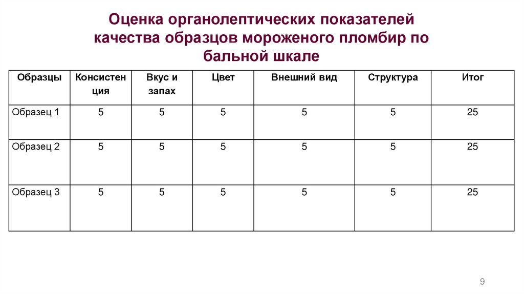 Оценка органолептических показателейкачества образцов мороженого пломбир по