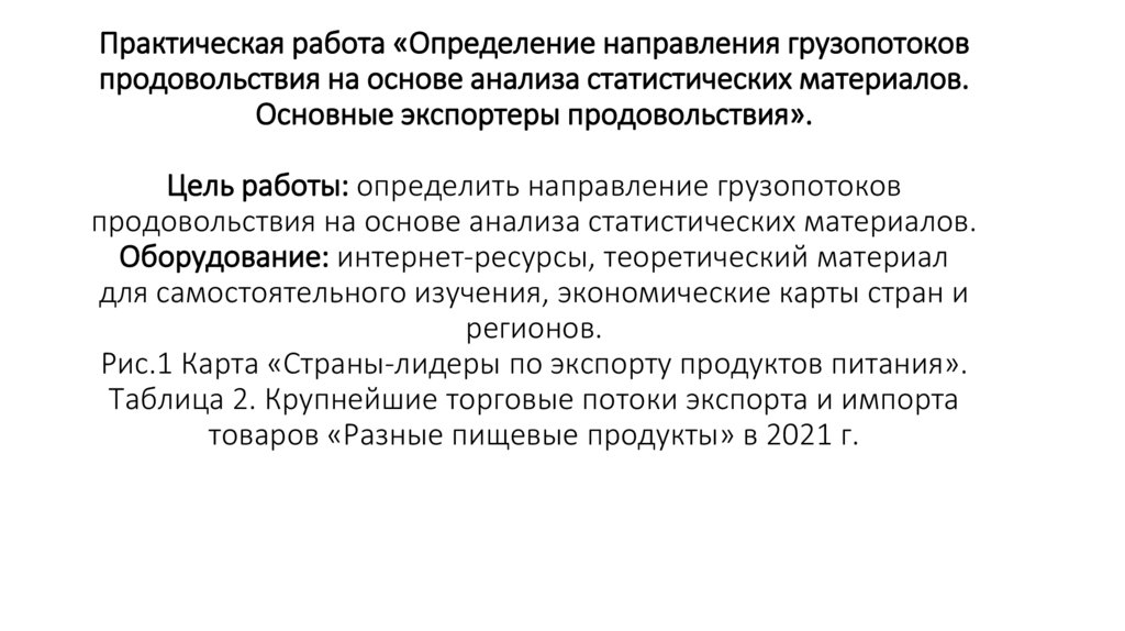 1. Практическая работа «Определение направления грузопотоков продовольствия на основе анализа статистических материалов. Основные