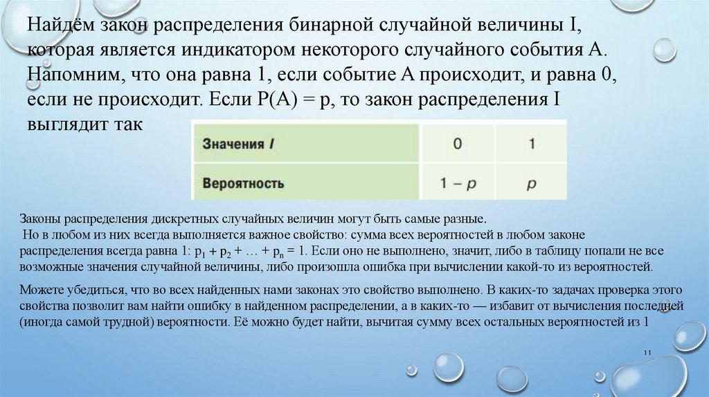 Но в любом из них всегда выполняется важное свойство: сумма всех вероятностей в любом законе