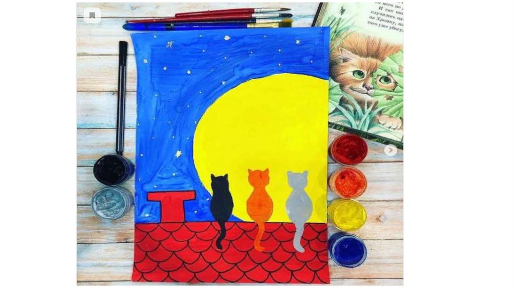 Моя художественная практика, 2 класс. Поэтапное рисование «Коты на крыше»