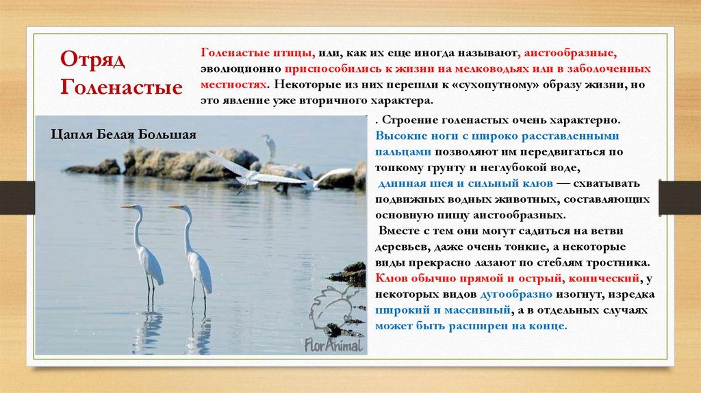 . Строение голенастых очень характерно.