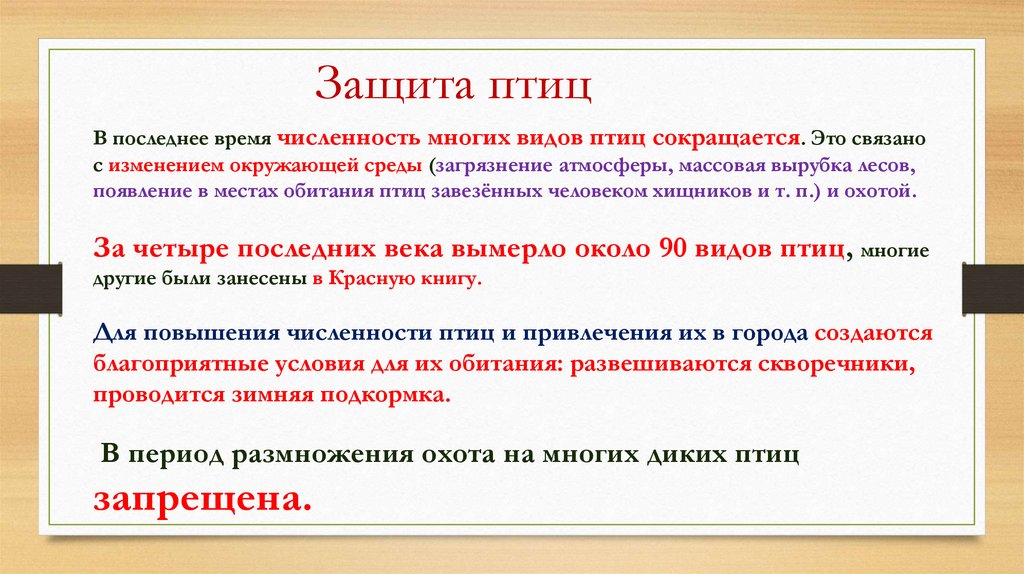 Защита птицВ последнее время численность многих видов птиц сокращается. Это связано