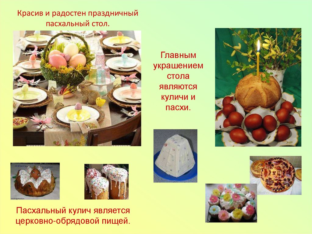Красив и радостен праздничныйпасхальный стол.