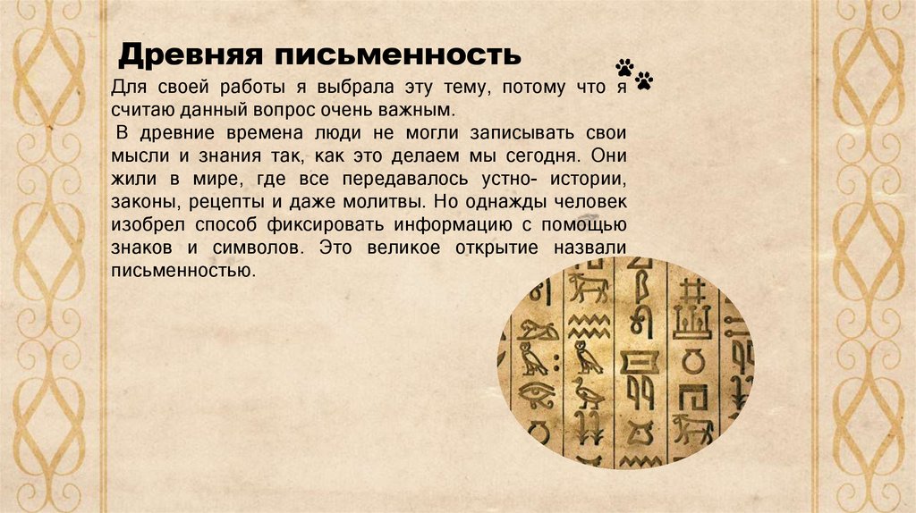 Древняя письменностьДля своей работы я выбрала эту тему, потому что я