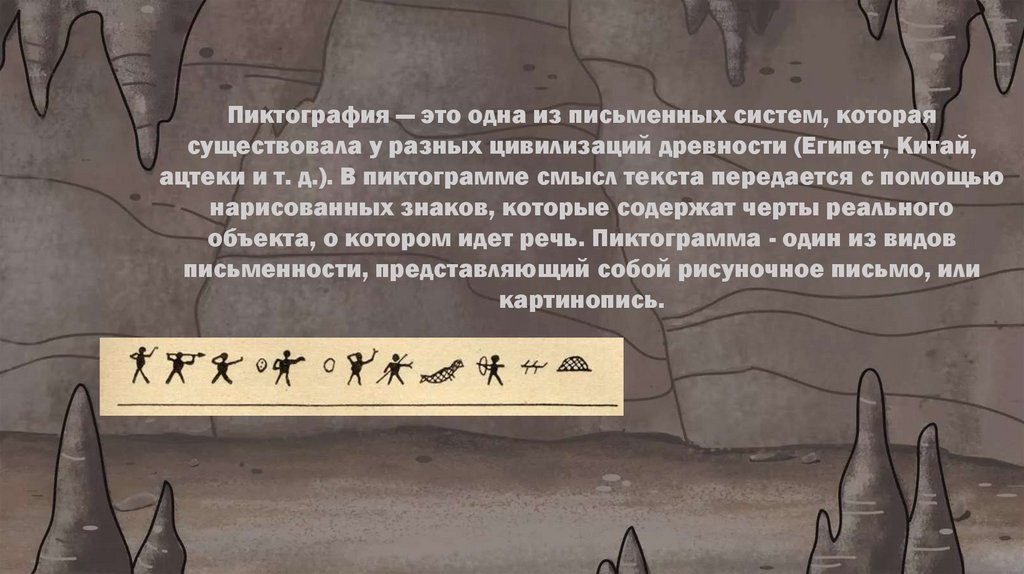 Пиктография — это одна из письменных систем, котораясуществовала у разных цивилизаций древности (Египет, Китай,