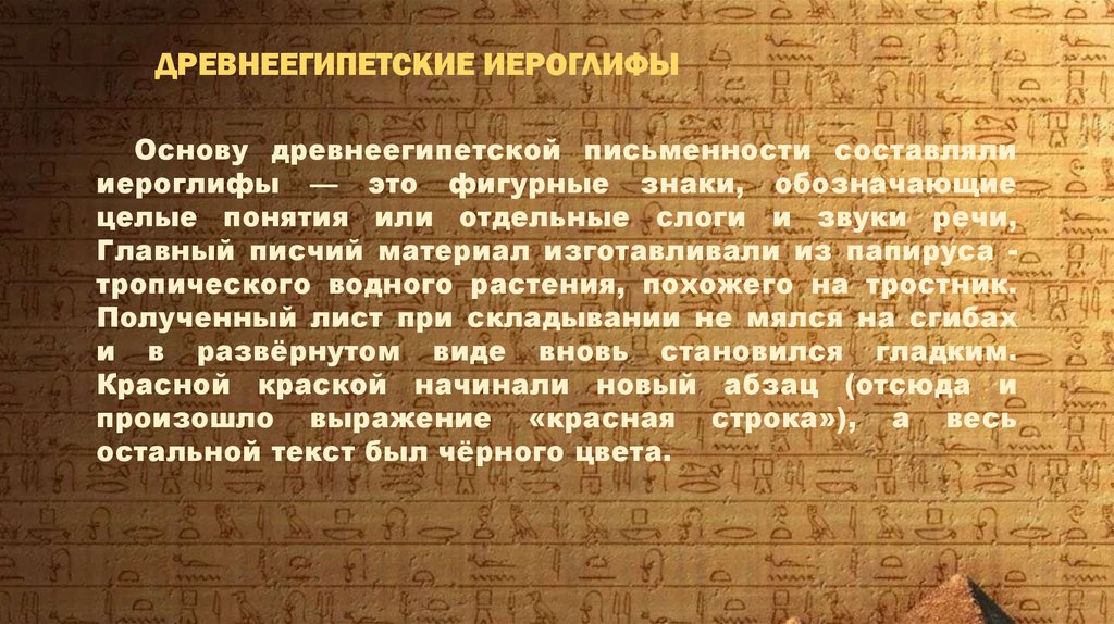 ДРЕВНЕЕГИПЕТСКИЕ ИЕРОГЛИФЫОснову древнеегипетской письменности составляли