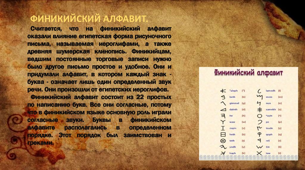ФИНИКИЙСКИЙ АЛФАВИТ.Считается, что на финикийский алфавит