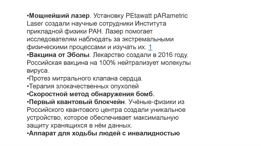 •Мощнейший лазер. Установку PEtawatt pARametricLaser создали научные сотрудники Института