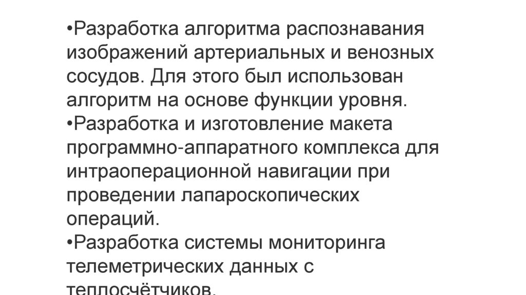 •Разработка алгоритма распознаванияизображений артериальных и венозных