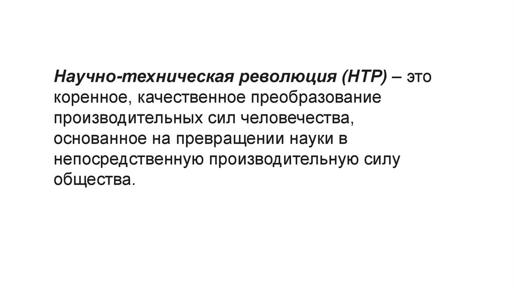 Научно-техническая революция (НТР) – этокоренное, качественное преобразование