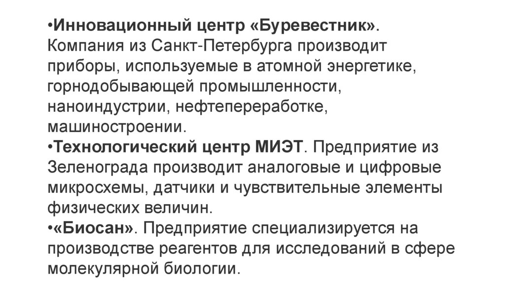 •Инновационный центр «Буревестник».Компания из Санкт-Петербурга производит