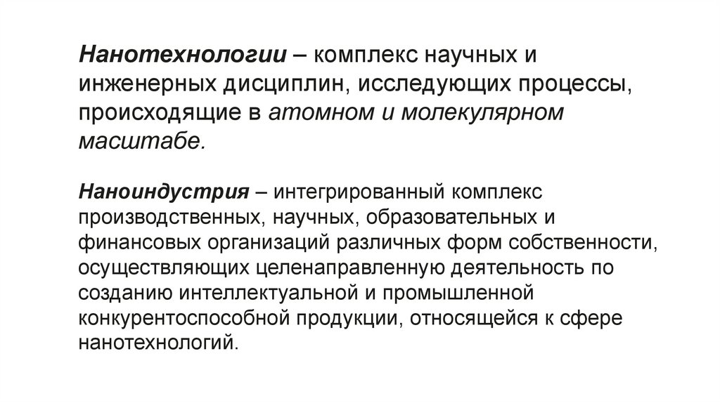 Нанотехнологии – комплекс научных иинженерных дисциплин, исследующих процессы,
