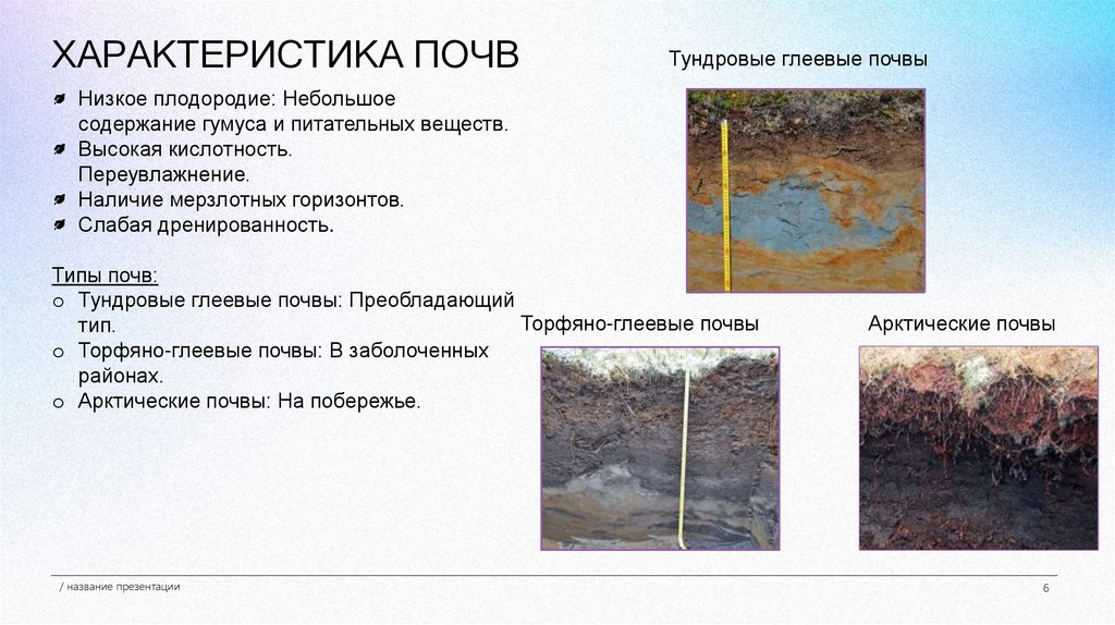 Тундровые глеевые почвыНизкое плодородие: Небольшое