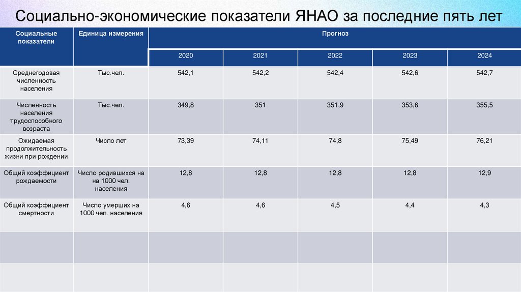 Социально-экономические показатели ЯНАО за последние пять летСоциальные