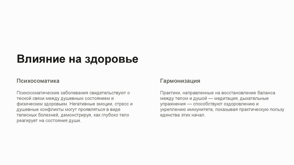 Влияние на здоровьеПсихосоматика
