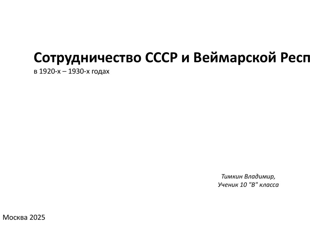 Сотрудничество СССР и Веймарской Респв 1920-х – 1930-х годах