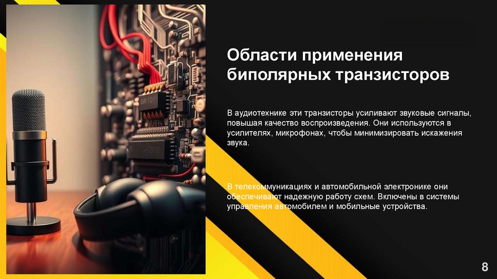 В аудиотехнике эти транзисторы усиливают звуковые сигналы,
