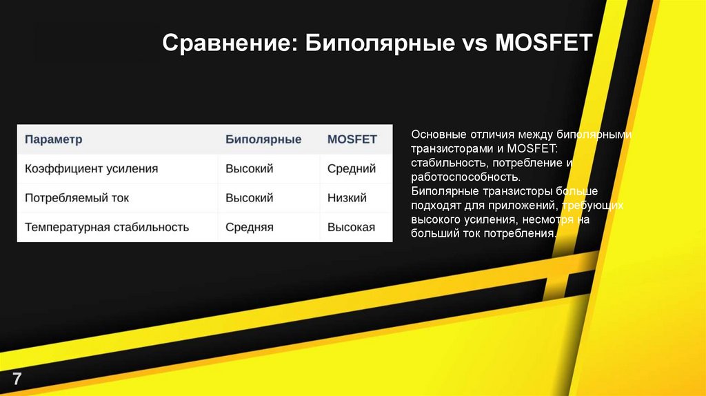 Сравнение: Биполярные vs MOSFETОсновные отличия между биполярными